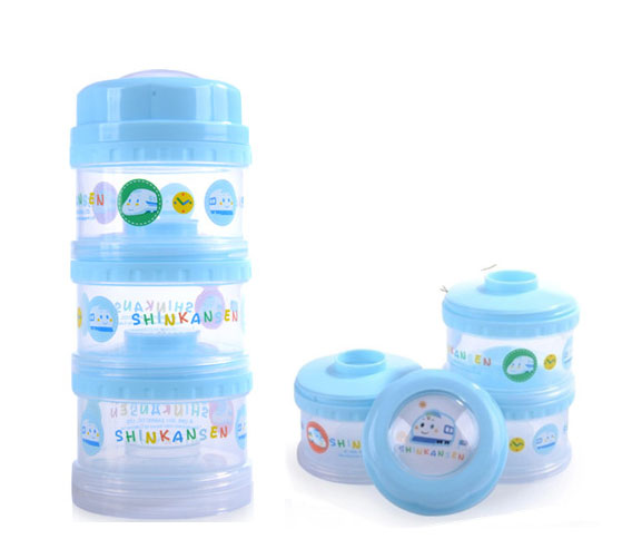 新幹線 3層(獨立出口)奶粉格- 方便外出時攜帶奶粉,- 或睡前預先載好適當份量,- 令半夜起床沖奶時更方便。 - 三格盒子分別設有獨立出口,- 改善一般奶粉盒重覆使用同一開口,- 無需上下更換,方便使用。- 瓶身/上蓋: P.P. 耐熱100度- 上蓋透明圓片: A.S.耐熱70度- 單格容量: 約65cc註:附圖僅供參考,一切以實物為準