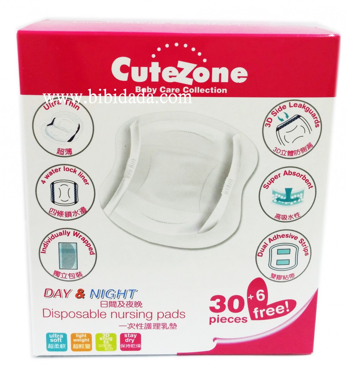 Cutezone即棄乳墊(36片)- 超薄柔軟,高吸水性。- 3D立體防側漏- 雙膠貼帶可讓乳墊緊貼在胸罩上不會移動,- 獨立包裝,乾爽衛生,便於攜帶