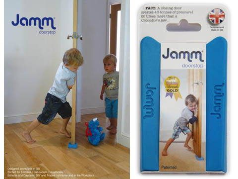 Jamm門阻單個裝-天藍 - The World's Best Door Stop! - Jamm Door Stop -the simple but effective solution to accidents caused by slamming doors and thus trapping fingers. - The Jamm Door Stop's unique curved surface allows it to hold both sides of the door at the same time - stopping the door moving in both directions - whilst allowing it to grip all floor surfaces. - The door cannot move in either direction and so little fingers cannot be trapped either at the handle or the hinges. - Whilst an adult can easily put in place and remove the Jamm Door Stop, a child will not have the ability to remove it. - The Jamm Door Stop is proudly made in the UK using recycled plastics and is available in 5 colours. - Packaged dimensions (inches):3.23 x 0.79 x 6.54 (Width x Height x Depth; decimal inches)