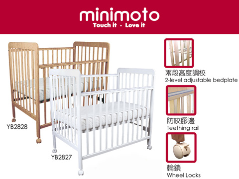 MINIMOTO松木細嬰兒床(YB2827-2828)- 外圍: 101.6 x 68.4 x 93.5 cm (長x闊x高)(40 x 27 x 37 吋)- 附送Minimoto 4吋太空棉記憶床褥- 床褥尺寸: 97 x 60 x 10 cm- 床板兩段高度調校- 防咬膠邊- 輪鎖- 馬來西亞製造- 本產品已通過EN716歐洲安全標準- 原木色或白色本產品只供訂購,店內不設陳列及存貨註:附圖僅供參考,一切以實物為準